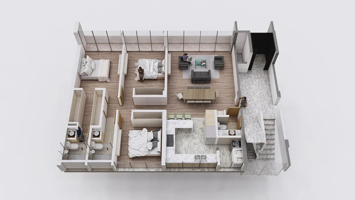 Escoge el departamento que mejor se ajuste a tus necesidades. Contamos con amplios y cómodos departamentos de 2 y 3 dormitorios.